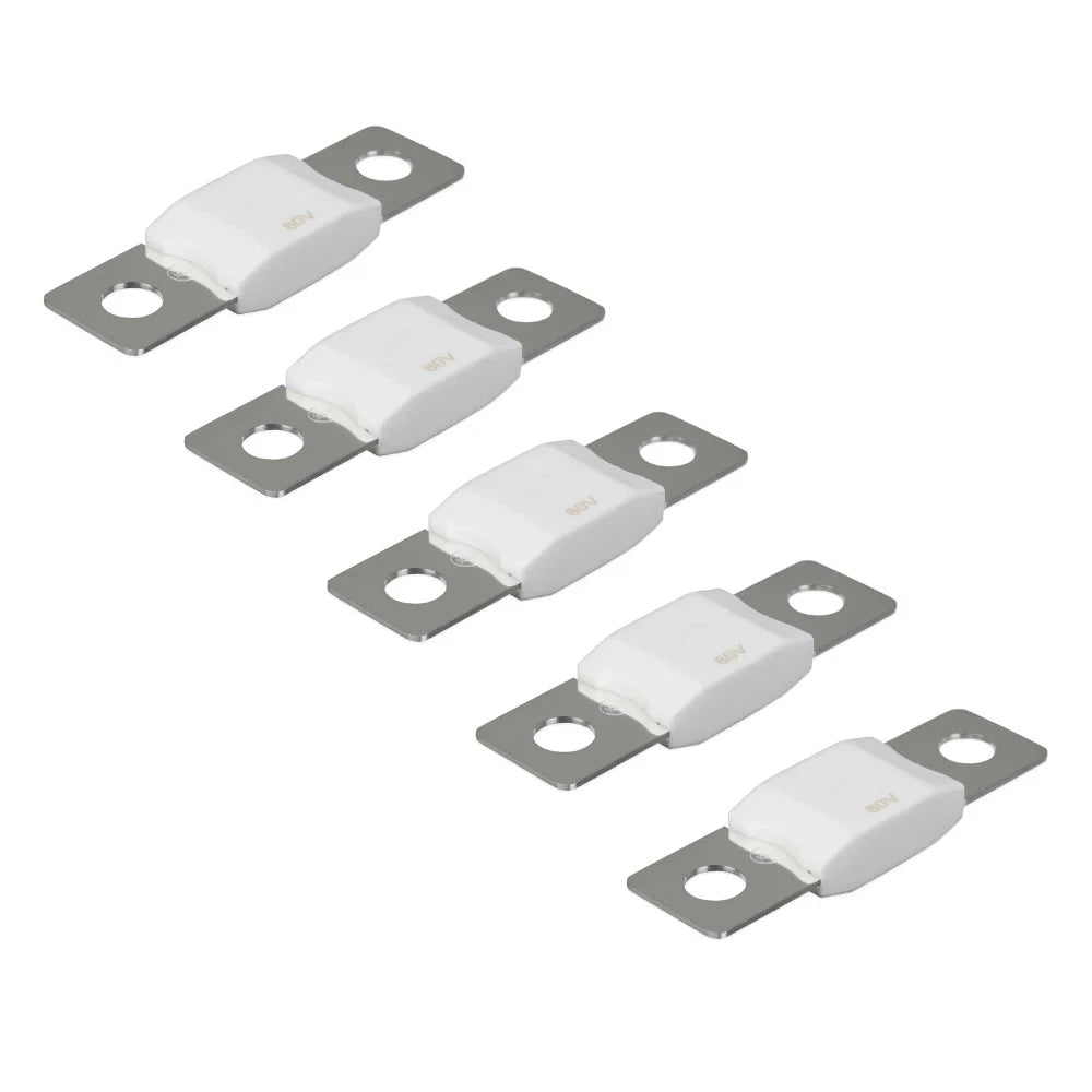 Protect high current DC circuits with a genuine Victron MEGA-fuse. Ideal for battery-to-inverter protection and DC distribution where reliable overcurrent protection is essential. Supplied as a pack of 5 fuses.